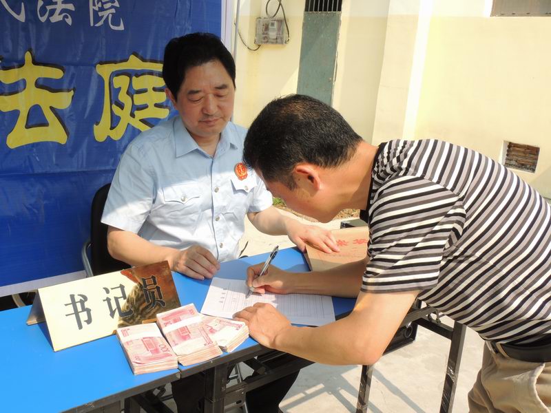 图为 茨河法庭巡回审理后原告现场领取赔偿款